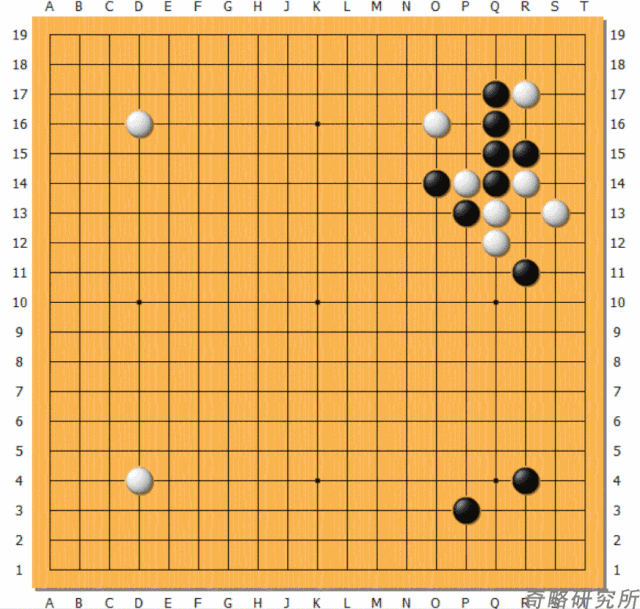 此为第四局(最后一局)的进程,局部下到黑77吃住白棋四子告一段落,黑棋已经有了巨大优势。如今在AI的判断中,这个黑棋的胜率为99.6%。